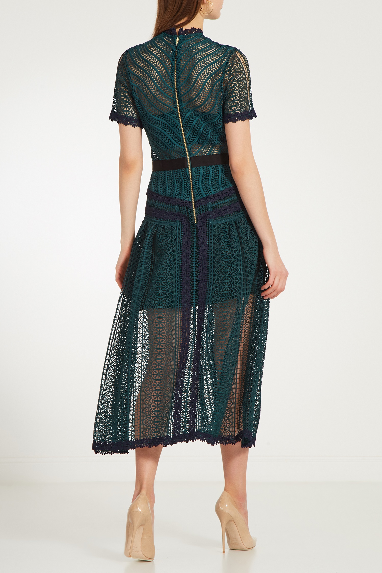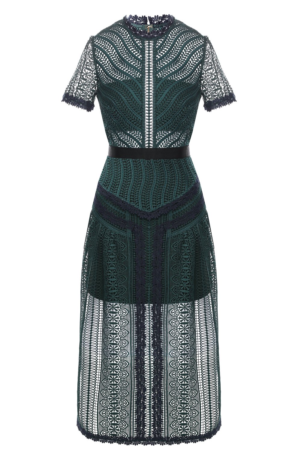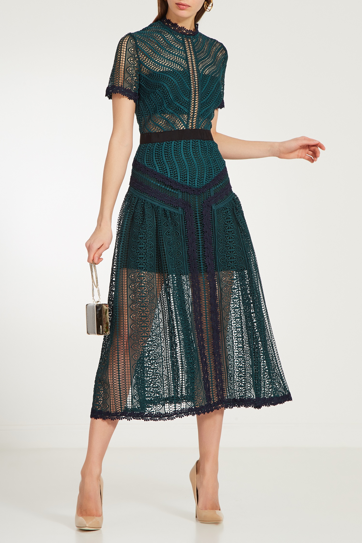 Женское темно-зеленое кружевное платье-миди SELF-PORTRAIT — купить ...