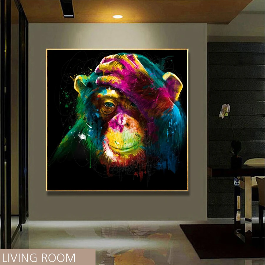 Mur photos peinture à l'huile impression toile idée supérieure décor mur Art pour peinture murale pas de cadre penser singe Art toile affiche | AliExpress
